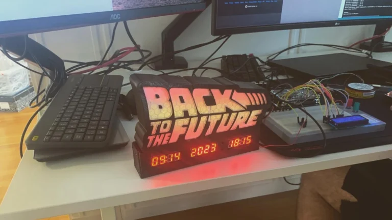Detta projekt hämtades från Instructables, där både kod och STL-filer för 3D-utskrift fanns färdiga. Vårt arbete bestod av att skriva ut delarna, programmera en ESP32 med den medföljande koden och montera de nödvändiga elektronikkomponenterna. Eftersom modellen var för stor för att skrivas ut i ett stycke delade vi upp den i flera delar, som sedan limmades ihop. För att uppnå en högkvalitativ finish slipade och målade vi klockan noggrant. Den inbyggda belysningen består av en lång programmerbar LED-stripe, vilket ger den ett snyggt och dynamiskt ljusspel..